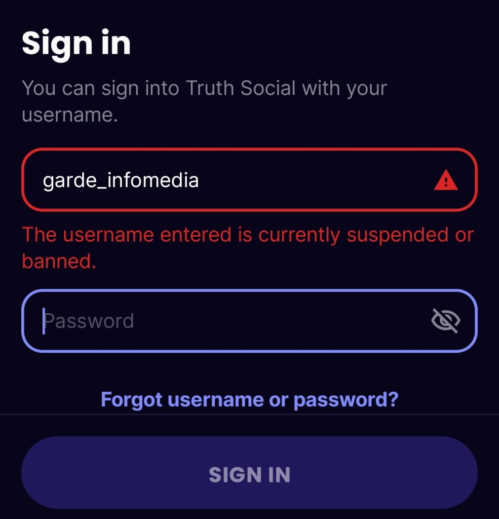 Auch Truth Social, die SocialMedia-App von Donald Trump, hat mich am 07.10.2025 ohne Vorankündigung oder Mitteilung per E-Mail einfach komplett rausgeschmissen…!!!